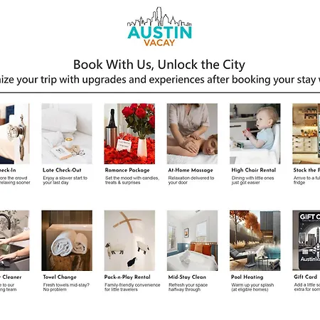 Máquinas de café/chá estão disponíveis na cozinha cozinha totalmente equipada que também apresenta microondas e refrigerador. O bar Cover-3 Austin Downtown está localizado a 400 metros de distância e serve pratos da cozinha americana. A paragem mais próximo é Lake Austin/7th, localizado a 650 metros de distância.
